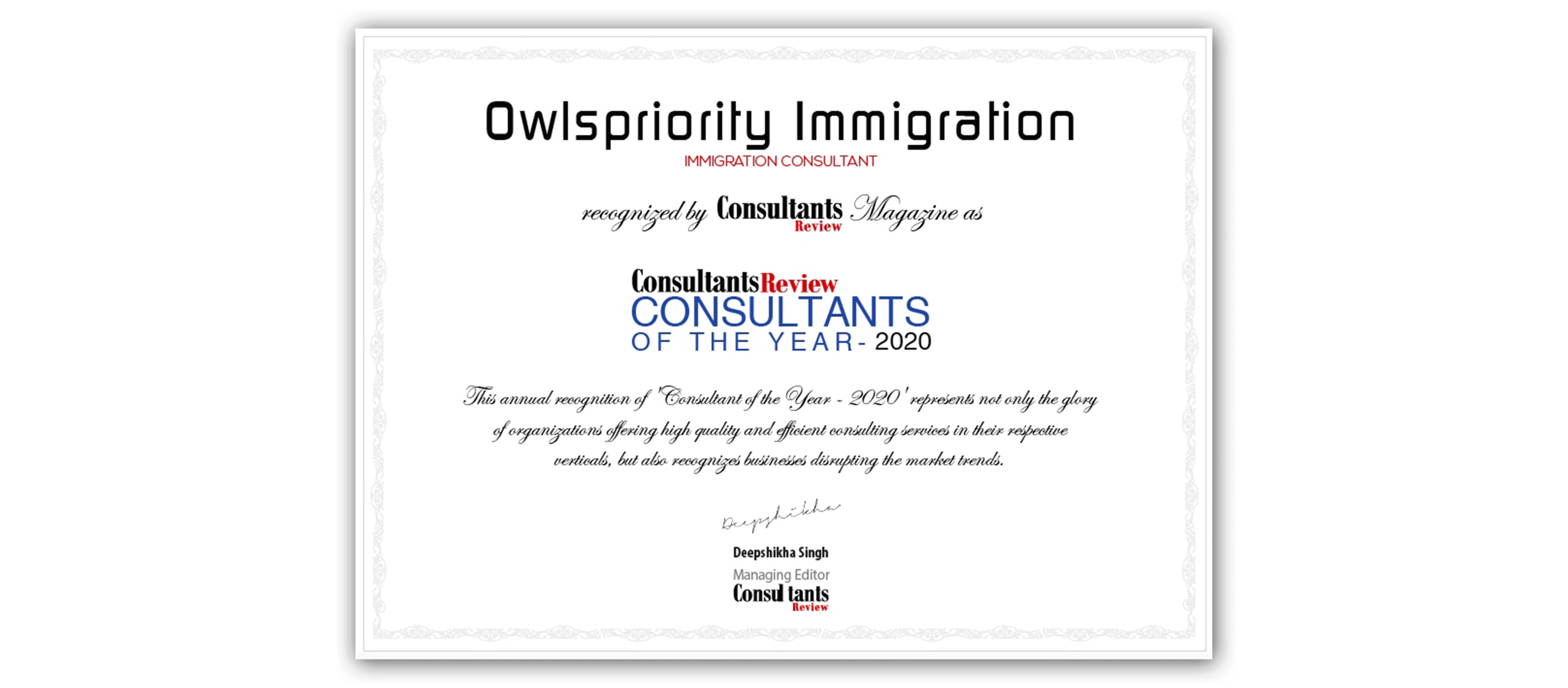 The Consultants Review, in their survey conducted in 2020, recognized Owlspriority Immigration as the Market Leader in Canadian Immigration consulting space in the Indian subcontinent.